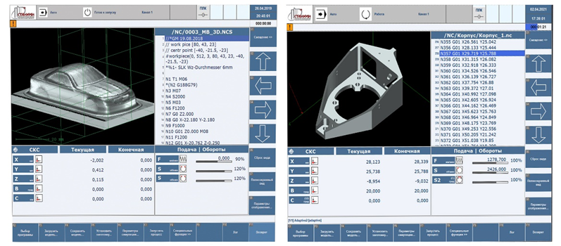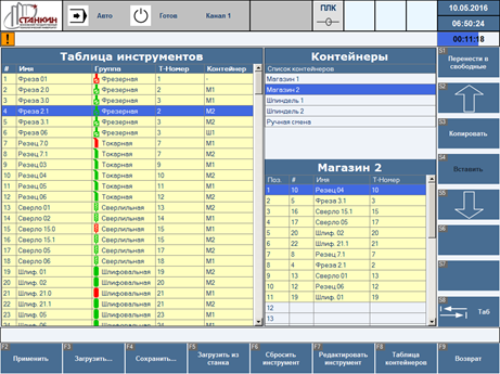 - экран просмотра и редактирования значений переменных станка;
